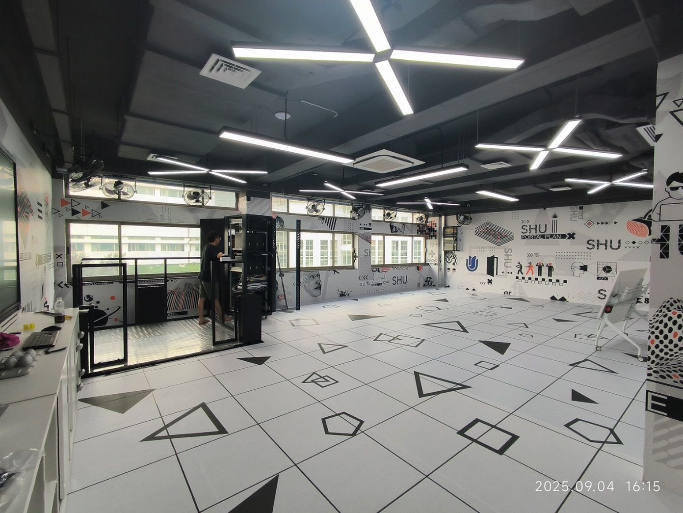 配备虚拟仿真新技术双创培养系统,致力于学科交叉,打造灵活可重构的实验空间,通过沉浸式大屏交互设备,支持多学科团队在此进行协同项目攻关与创新实践。