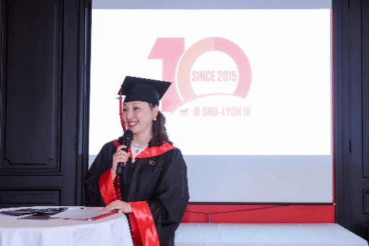 姚劼表示起初大家以为求学仅是学历与知识提升,但是在老师们对可持续发展、文化遗产保护与创意经济的阐释中经历思想洗礼,法国里昂三大教授带来全球化视野与哲学思辨,上大老师展现扎根中国实践的本土智慧与创新转化,这种中西思想碰撞让大家领悟到,这不仅是学历项目,更是“知行合一”的认知革新。在求学过程中结下的同学情谊让所有人在毕业后形成充满活力的“柔性链接”网络。大家坚信,该网络将“星火燎原”,催生更多跨界创新,成为推动可持续发展理念落地的强大力量。“长风破浪会有时,直挂云帆济沧海。”毕业不是终点,而是新征程的起点。所有毕业生愿带上两校赋予大家的知识、智慧与情谊,从黄浦江畔和富维耶山脚下再度启航,继续“可持续发展”的毕生实践。